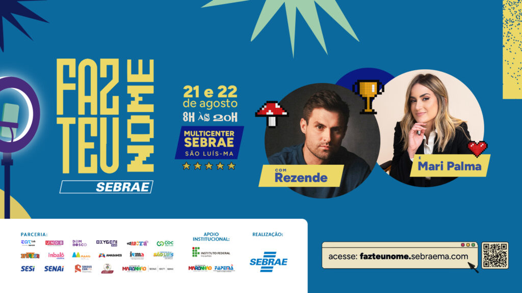 SÃO LUÍS – O Sebrae anunciou as presenças da jornalista Mari Palma e do influenciador Pedro Rezende como atrações do evento “Faz Teu Nome”, que acontece nos dias 21 e 22 de agosto, às 19h, no Auditório Darcy Ribeiro (Multicenter Sebrae).