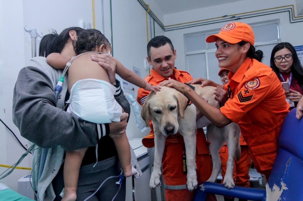 Entre as ações mais recentes, a labradora Maia visitou o Hospital Aldenora Bello, onde interagiu com crianças internadas, acompanhada por bombeiros e estudantes do Colégio Militar 2 de Julho. A atividade contou ainda com distribuição de lembranças, reforçando o vínculo afetivo.