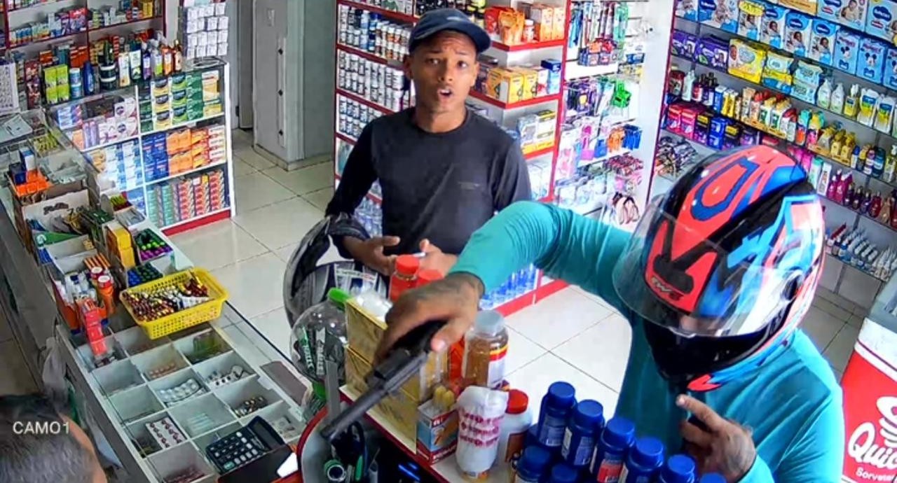 Uma farmácia foi assaltada na tarde desta terça-feira (14) no bairro da Liberdade, em São Luís, em frente ao antigo 8º Distrito Policial. Imagens da câmera de segurança do estabelecimento registraram a ação criminosa. Dois criminosos chegaram ao local em uma motocicleta, anunciaram o assalto e levaram pertences do atendente, assim como valor não informado do caixa.