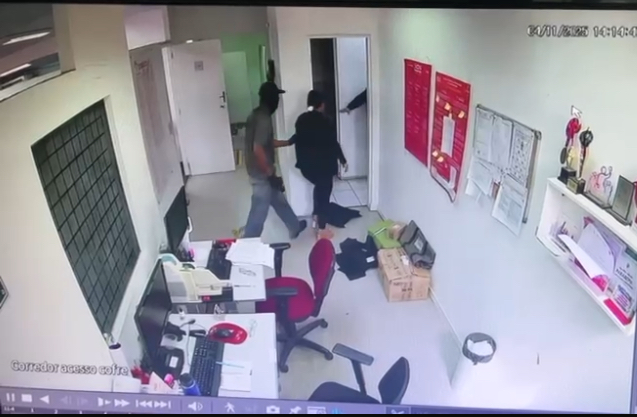 Câmeras de segurança chegaram a gravar o momento do assalto e da fuga em dois veículos que estavam parados em uma rua lateral. O valor levado pelos assaltantes em sacolas não foi revelado.