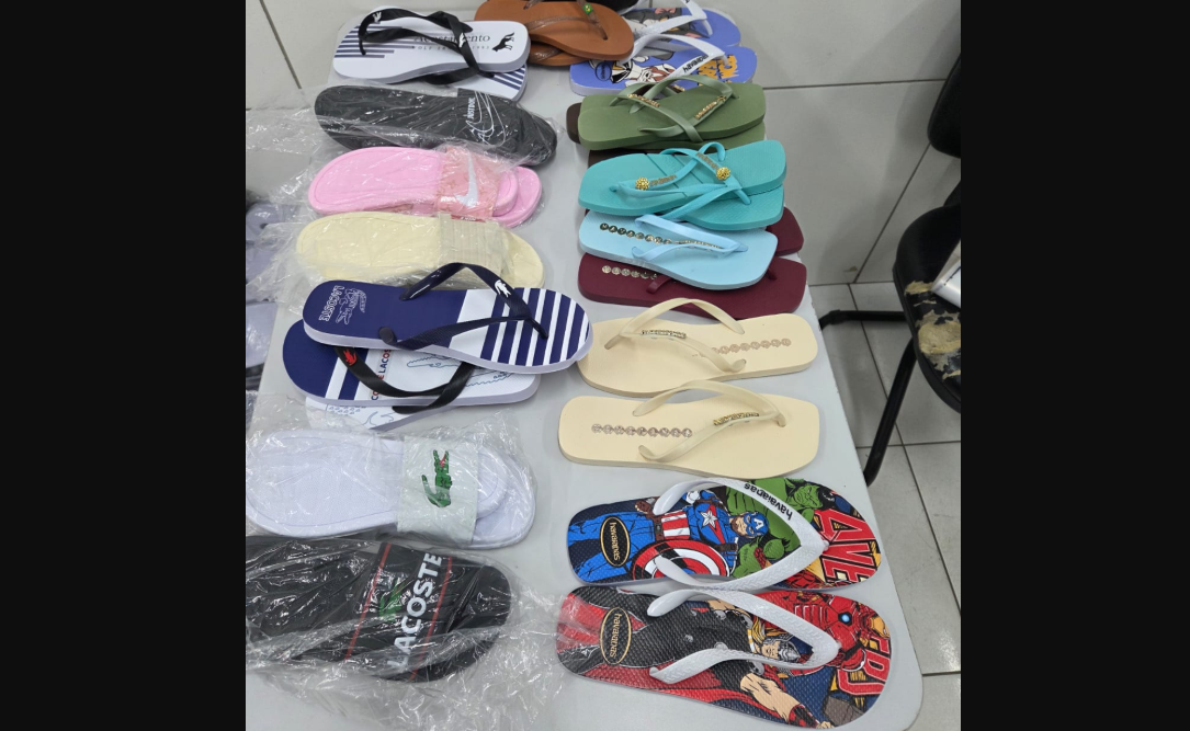 A Polícia Civil do Maranhão prendeu duas pessoas e apreendeu cerca de 2.800 pares de sandálias falsificadas durante uma operação contra a armazenagem e a comercialização de produtos pirateados em Timon (MA).