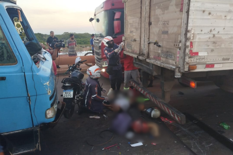 Uma mulher morreu em um grave acidente, na tarde desta sexta-feira (14), na Ponte Nova, que liga Teresina (PI) a Timon (MA). A colisão envolveu uma motocicleta e caminhões, segundo as primeiras informações divulgadas pela Polícia Rodoviária Federal (PRF).