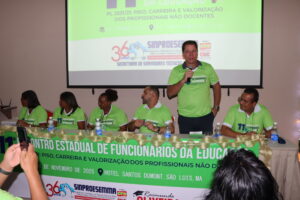 O 11º Encontro de Funcionários da Educação realizado pela Secretaria de Servidores Técnicos e de Apoio do Sinproesemma foi um momento de debate, mobilização e formação dos profissionais não docentes de todo o Maranhão que estiveram no Hotel Santos Dumont, na sexta-feira, 14 de novembro. O Encontro reafirmou a importância desses profissionais para o bom funcionamento da educação pública e fortaleceu a pauta da valorização e carreira.