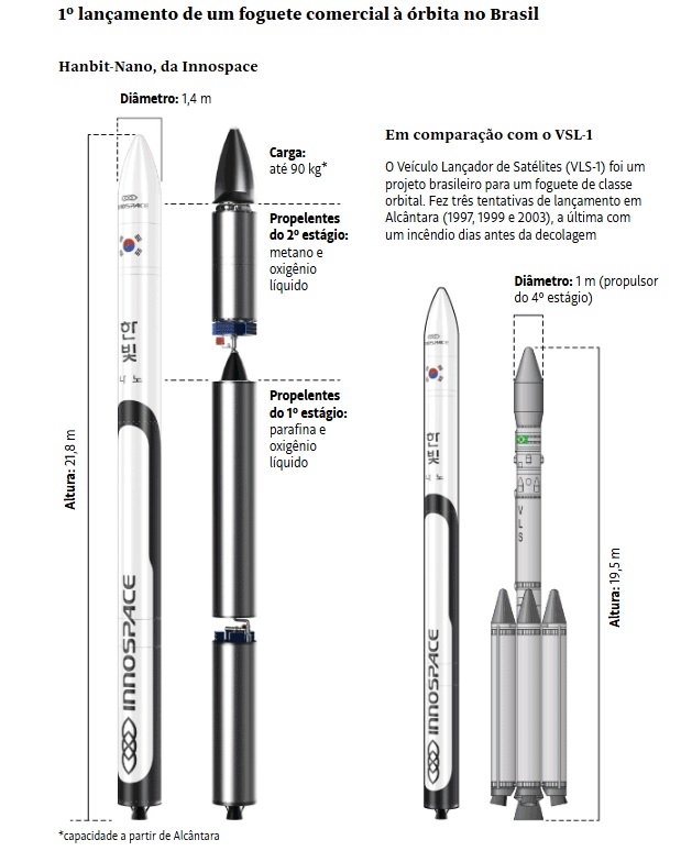 O lançamento do foguete Hanbit-Nano, que poderá marcar a primeira operação de envio de satélites à órbita terrestre a partir do território brasileiro, foi marcado para 17 de dezembro deste ano. A alteração foi anunciada pela Força Aérea Brasileira na noite de quinta-feira, 20, após decisão conjunta com a empresa sul-coreana Innospace, responsável pelo veículo. Inicialmente, o voo estava programado para ocorrer no sábado, 22 de novembro, às 15h, no Centro de Lançamento de Alcântara, no Maranhão.