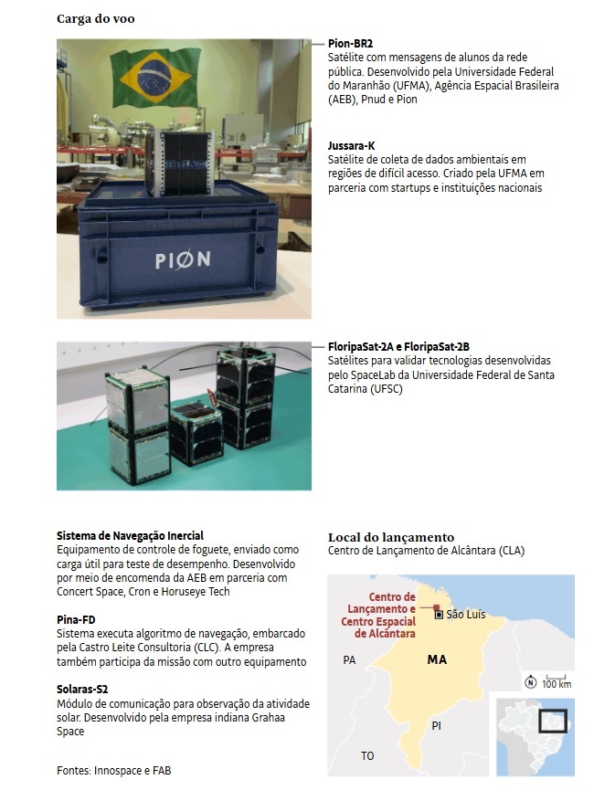 O lançamento ocorrerá a partir do Centro de Lançamento de Alcântara, principal base espacial do Brasil. Foi nesse local que ocorreram as tentativas de voo do VLS-1, nos anos de 1997, 1999 e 2003. A última tentativa, interrompida por um incêndio na plataforma antes da decolagem, resultou na morte de 21 profissionais e levou ao encerramento do projeto. Desde então, a unidade tem sido utilizada para missões suborbitais, especialmente com o foguete VSB-30, desenvolvido pelo Instituto de Aeronáutica e Espaço em parceria com a agência espacial alemã DLR. O último lançamento desse modelo a partir de Alcântara ocorreu em 2022.