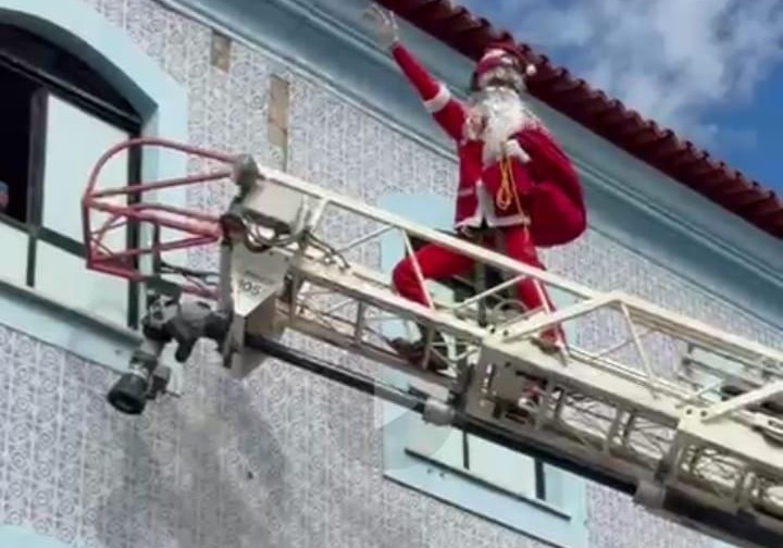 Pacientes em tratamento no Hospital de Oncologia do Maranhão Tarquínio Lopes Filho viveram uma manhã diferente nesta terça-feira (23), em São Luís. Em uma ação especial de Natal, o Papai Noel do Corpo de Bombeiros Militar do Maranhão surpreendeu pacientes e equipes de saúde ao entrar pela janela de um dos andares mais altos da unidade hospitalar, utilizando equipamentos operacionais da corporação.