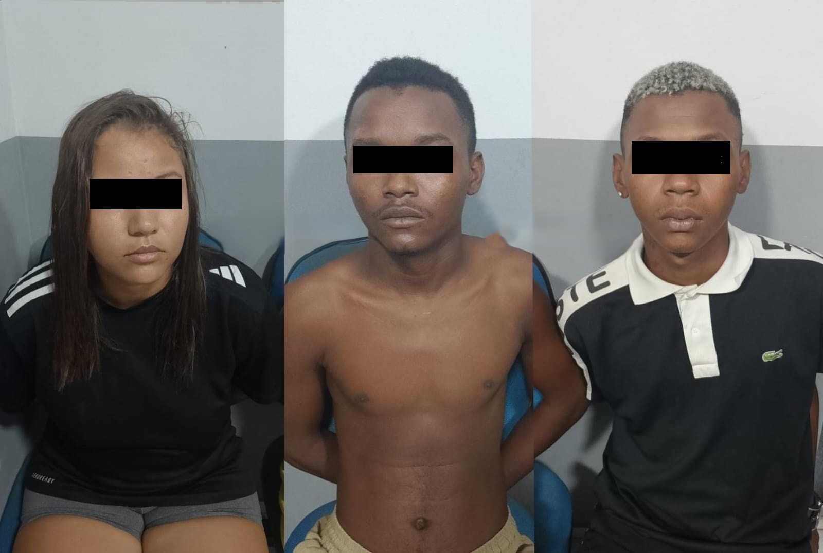 Os presos, identificados como Gabriela Araújo dos Santos, de 26 anos; Wilson Domingos Cardoso França, 21; e Wilton Cardoso França, 20, foram capturados em um imóvel no Residencial Santa Rita, durante cumprimento de um mandado de busca e apreensão.