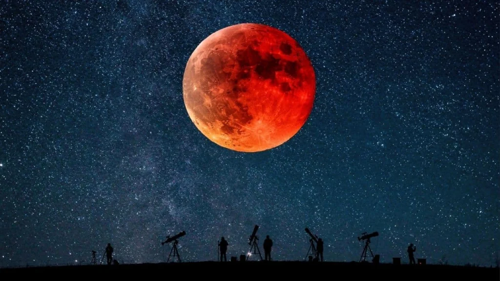 O eclipse acontece quando Sol, Terra e Lua se alinham, e a Terra projeta sua sombra sobre a Lua. No estágio parcial, a sombra avança como uma “mordida” no disco lunar. Já na fase total, a Lua fica avermelhada porque a luz do Sol atravessa a atmosfera terrestre, que filtra as cores azuladas e deixa passar tons vermelhos — efeito que dá origem ao apelido popular.