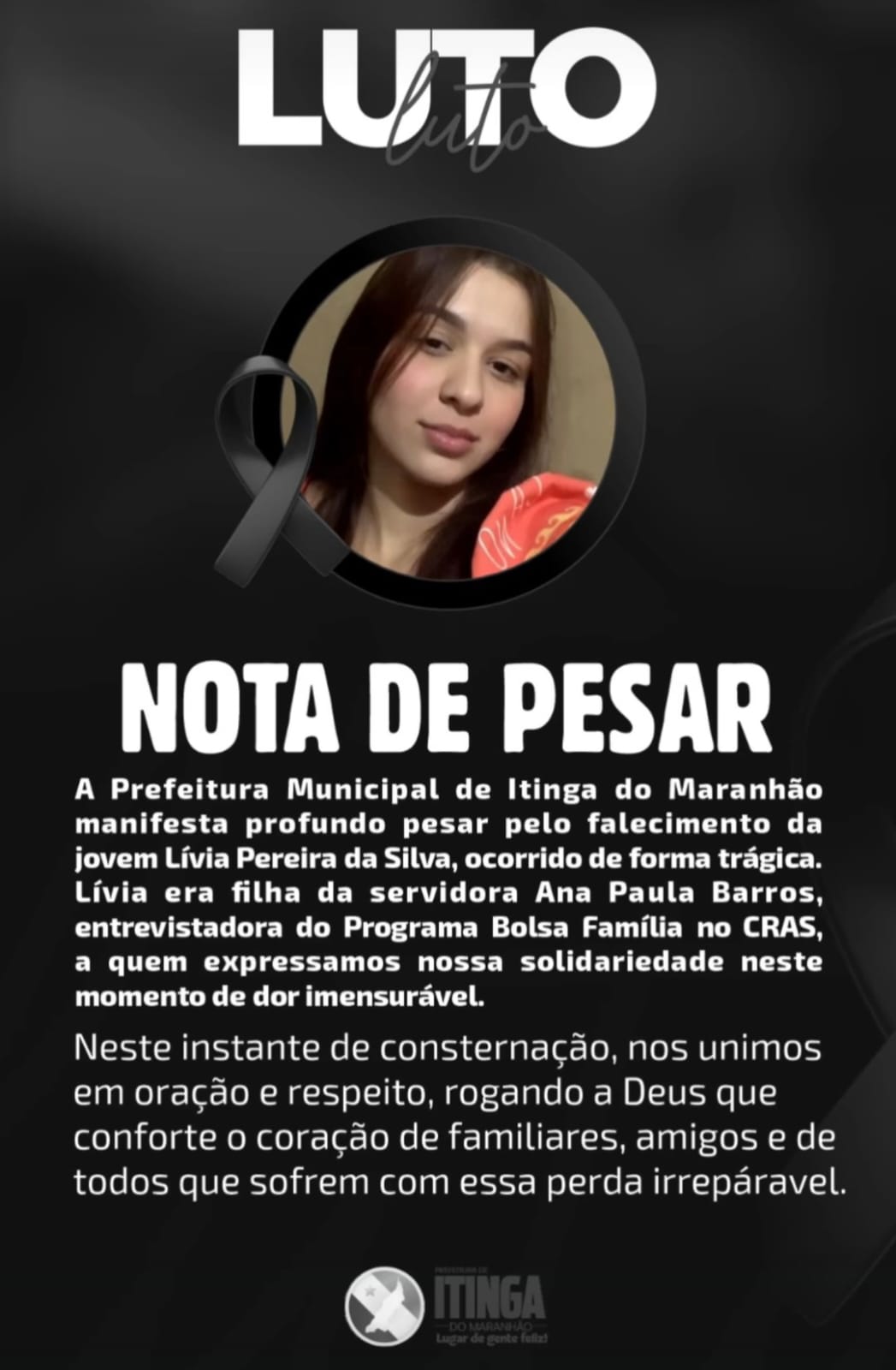 A Prefeitura Municipal divulgou nota de pesar, informando que Lívia era filha de uma servidora pública e manifestando solidariedade à família.
