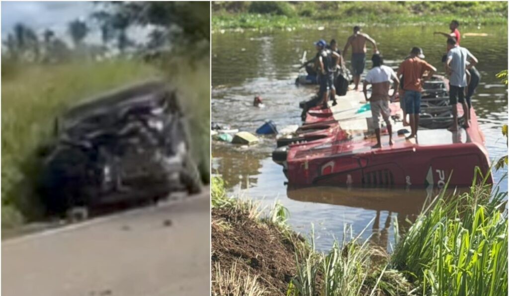 Com a força do impacto, o ônibus saiu da pista e caiu em um açude às margens da rodovia, ficando parcialmente submerso. Antes mesmo da chegada das equipes de socorro, moradores e motoristas que passavam pelo local iniciaram o resgate, retirando passageiros e ocupantes dos carros envolvidos.